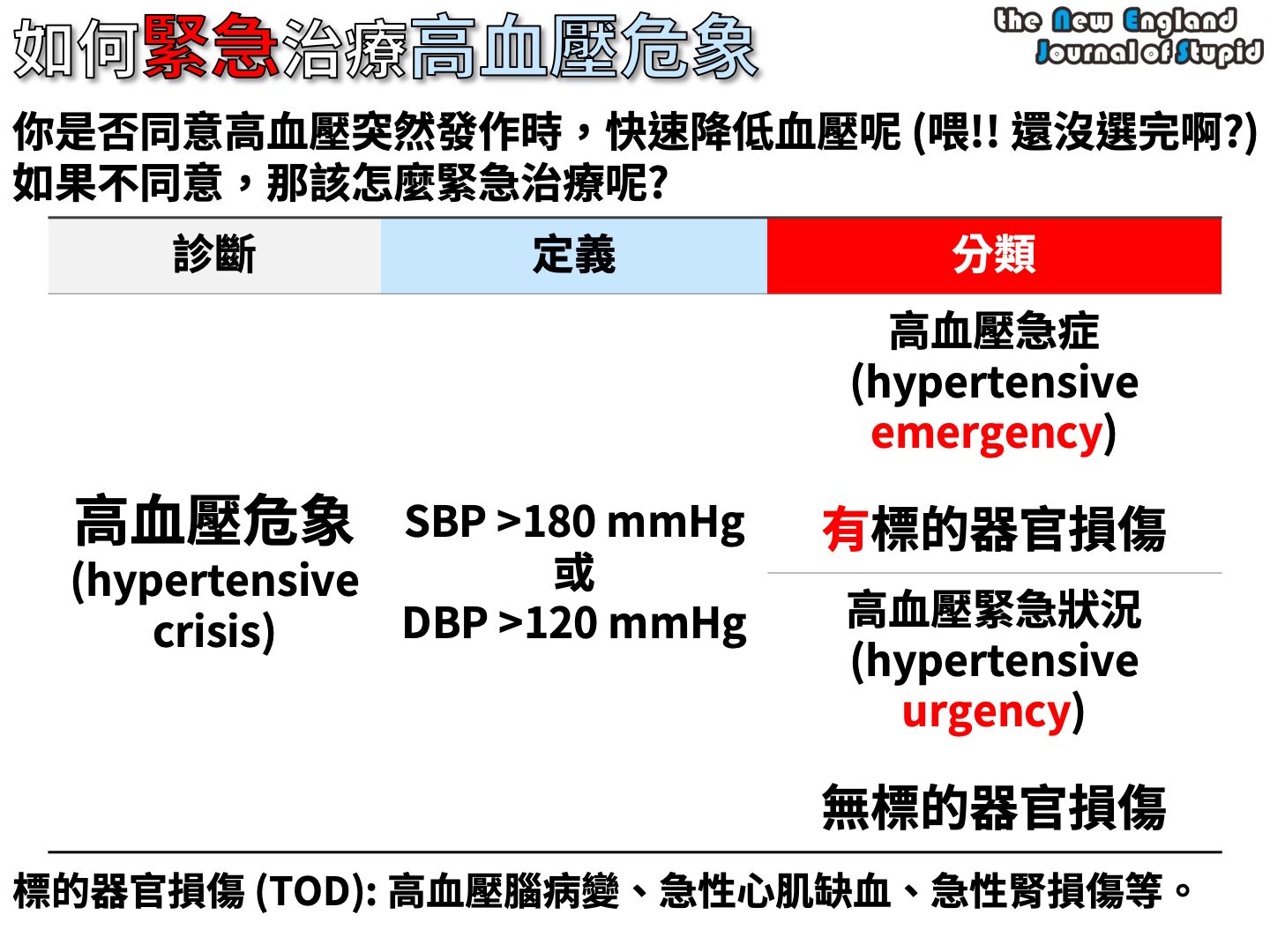高血壓危象hypertensive emergencies : 需立即降壓,靜脈注射治療:nicardipine、fenoldapam、labetalol