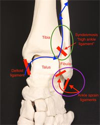 遠端脛腓關節屬於韌帶聯合關節(syndesmosis),約有10%的踝扭傷發生此處,外轉是最常造成受傷的外力。