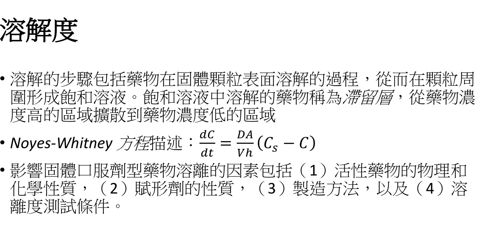 69 下列何種公式常用在解析藥品的溶離動力學?
