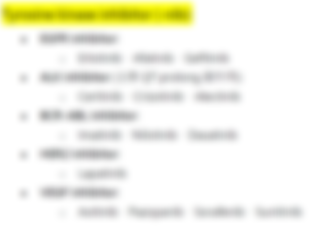 Imatinib:抑制 BCR-ABL Tyrosine kinase。