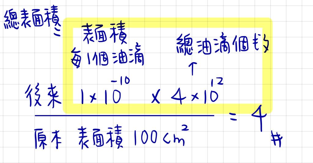 所以我就把1*10-10/100→想成乳劑的表面積變為原本的油的幾分之幾=1*10-12