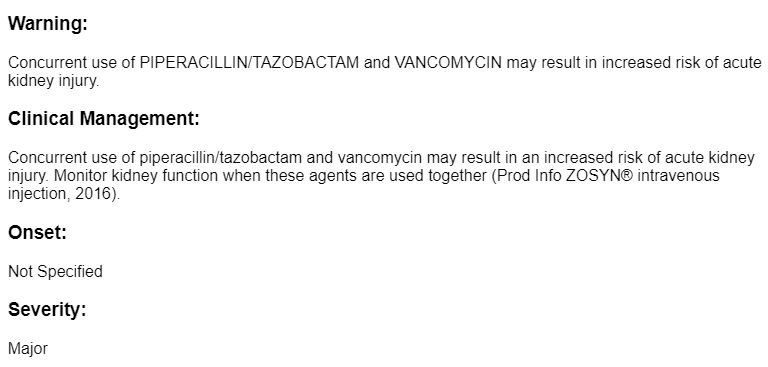 因為Piperacillin/tazobactam + Vancomycin的組合可能會增加急性腎損傷的風險