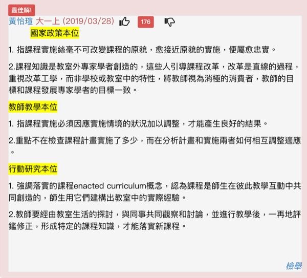 D選項應改成(D) 藍老師傾向支持教師教學本位課程,白老師則支持國家政策本位課程