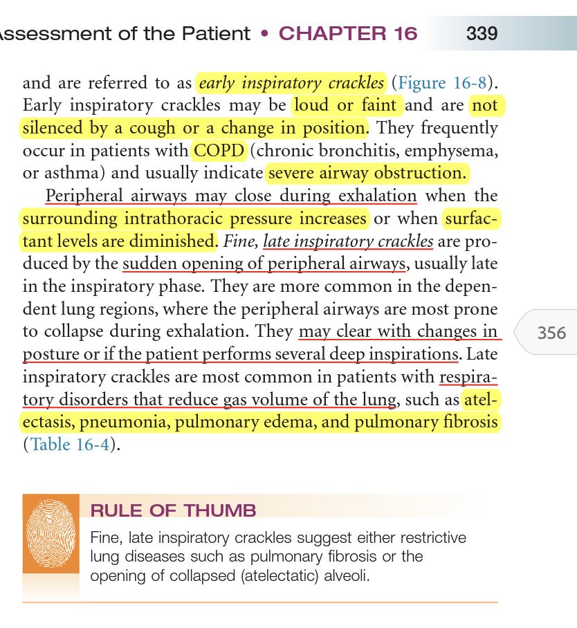 Egan’s p.339(A) pulmonary fibrosis 產生的呼吸音是:「吸氣末期」會出現 “Fine late inspiratory crackles”