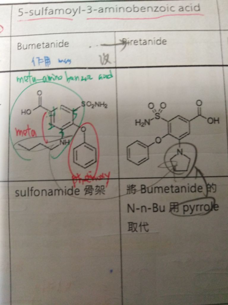 -tanide和-semide都是loop類利尿劑,且都帶有sulfonamide(SO2NH2)結構。