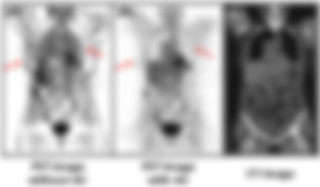71.當正子影像出現高攝取的皮膚輪廓(hot skin),且肺部有高攝取及縱膈腔有低攝取的影像特徵時,其為下列