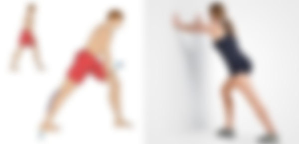 (B)後側腿之大腳趾朝正前方、腳跟貼地