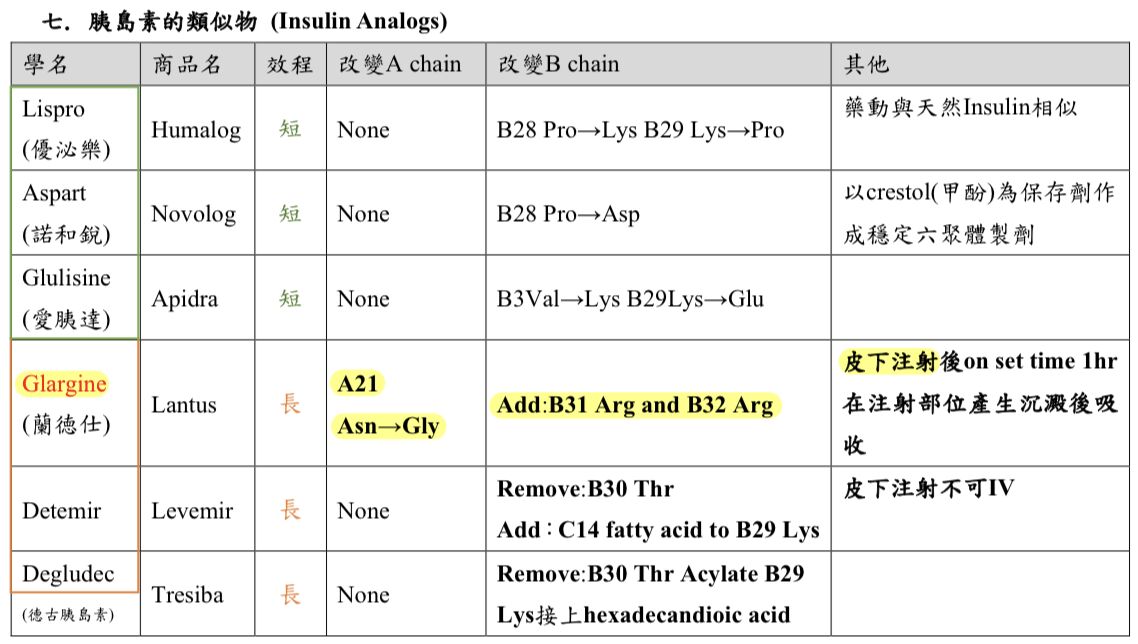 長效:ultralante混濁狀、glargine澄清狀