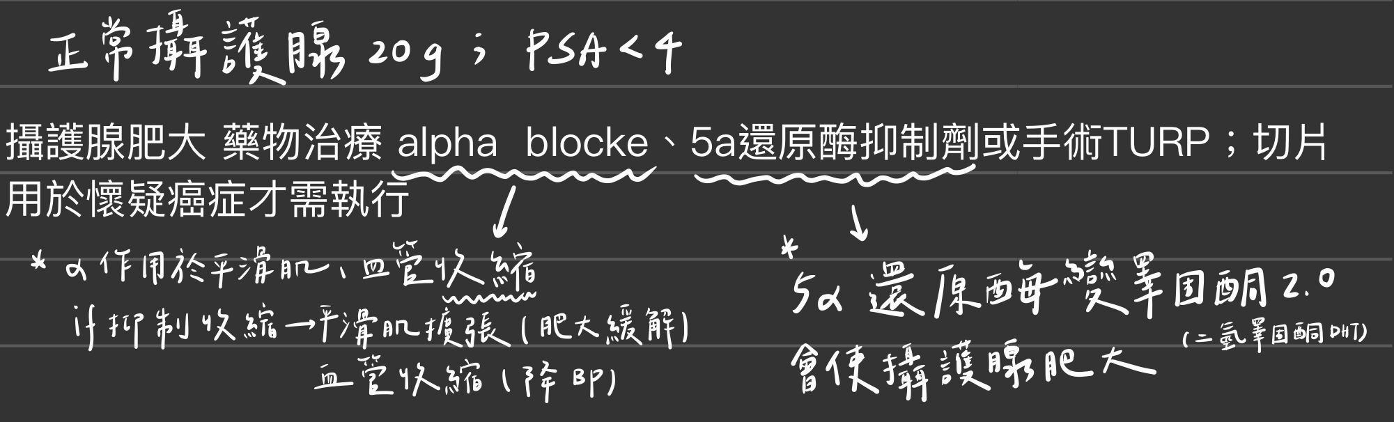 (2)同時有下泌尿道症狀及BPH之患者,可使用alpha blocker及5a還原酶抑制劑