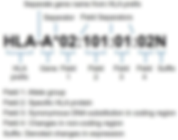 74.下列何者是高鑑別度(High resolution)的HLA分型結果?