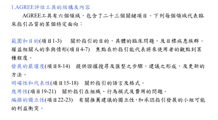 (APPRAISAL OF GUIDELINES FOR RESEARCH & EVALUATION II)所評估的領域範