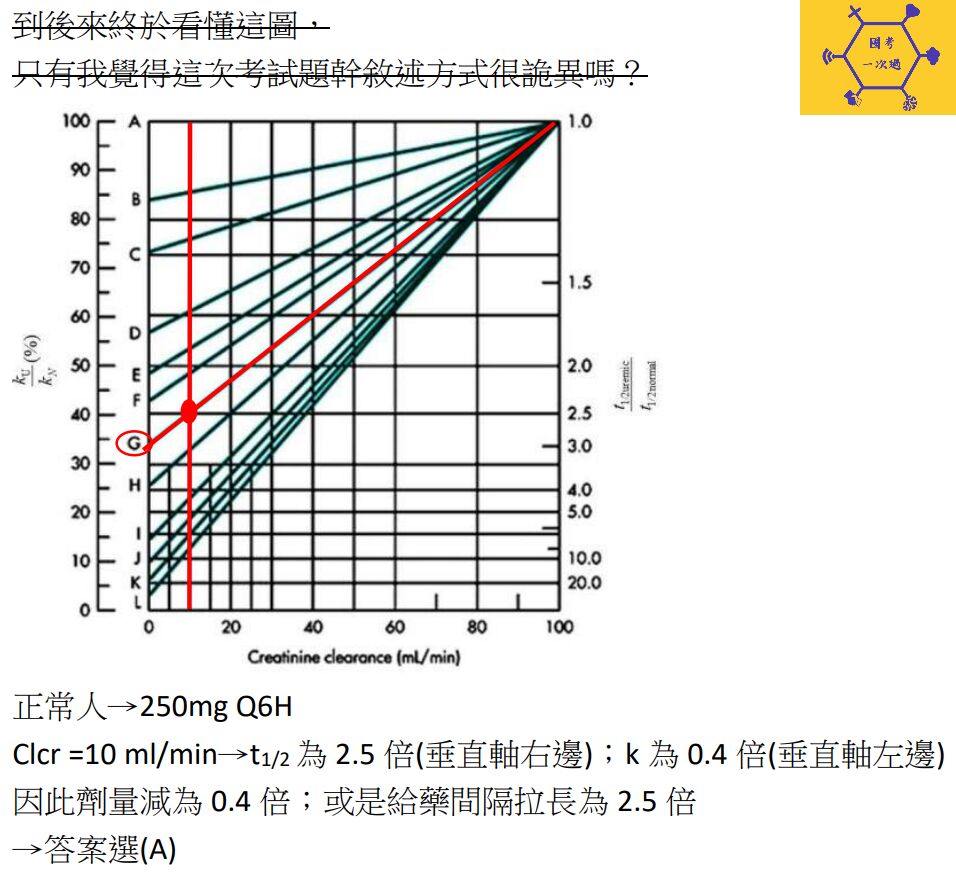 75.依下圖 oxacillin 屬 G 群藥物,其排除速率常數為1.7