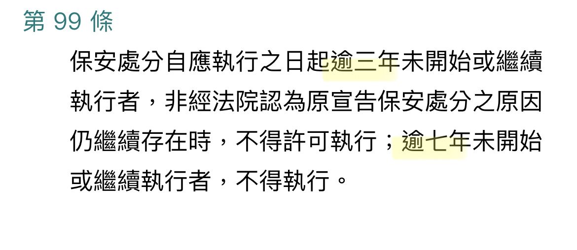 告保安處分之原因仍繼續存在時,不得許可執行;逾七年未開始或繼續執