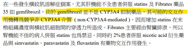 補充B2, Gemfibrozil應該不算是CYP3A4的抑制劑