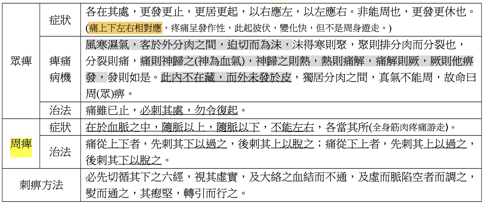 (C)風寒濕客於外分肉間,排分肉分裂而痛,痛則厥氣歸之,風邪乘之而陣發性疼痛
