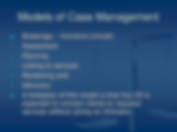 仲介模式:主要角色在於連結個案需要的社區資源。(像房仲幫你介紹房子跟屋主認識)