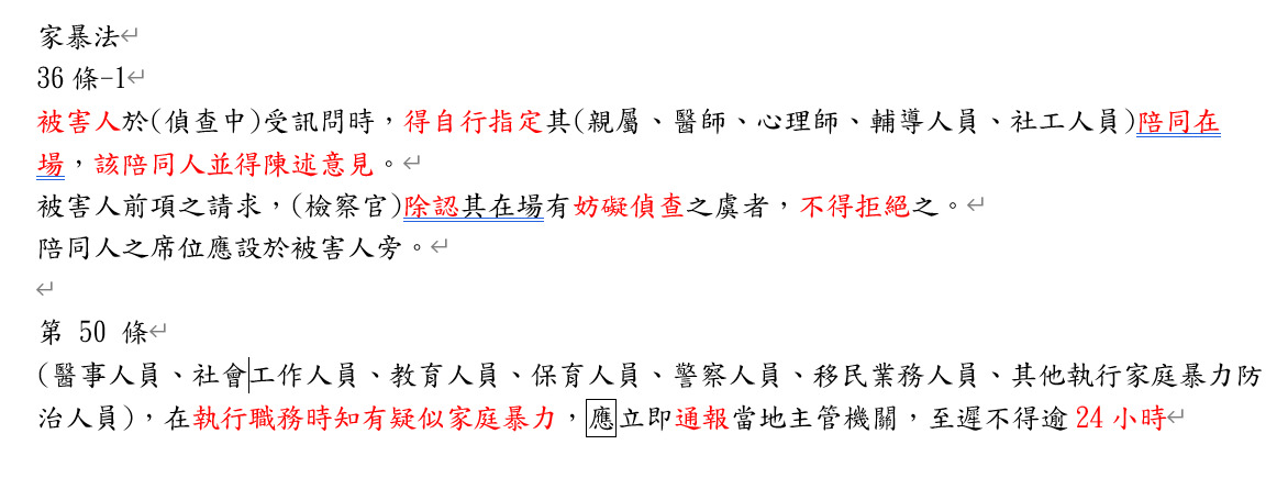 (B)被害人於偵查中受詢問時,應主動通知其親屬、醫師、心理師、輔導人員或社工人員陪同在場, 陪同人並得陳述意見