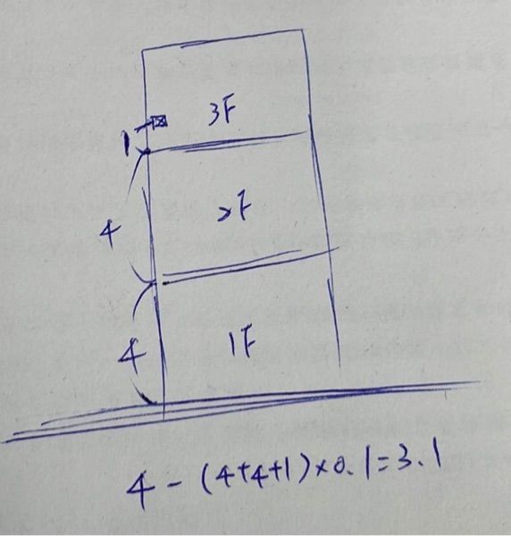 8.一建築物表後給水壓力量測為 4.0kg/cm2,假定一層樓的高度為 4 米,在直接給水與不考慮其他摩擦造成的水頭損失情況下,請問三樓住戶可用的水壓約為多少 kg/cm2?(給水栓高度為 1 米)