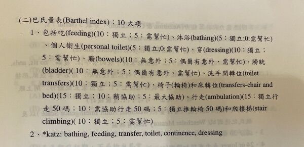 (D)活動限制(activity limitation)、得分越低失能程度越低