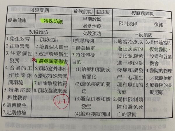 8.在公共衛生的三段五級預防工作中,物理治療師到工廠教導員工正確姿勢以避免職業傷害是屬於那一級?