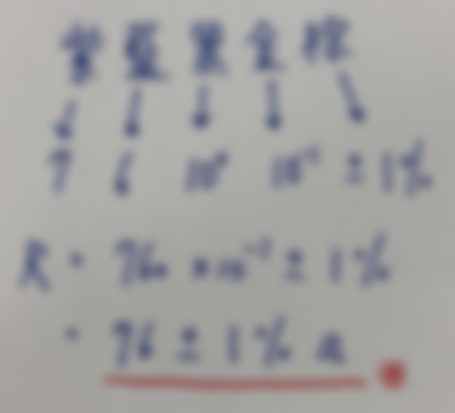 8.紫藍黑金棕的五色環色碼電阻讀值為多少?