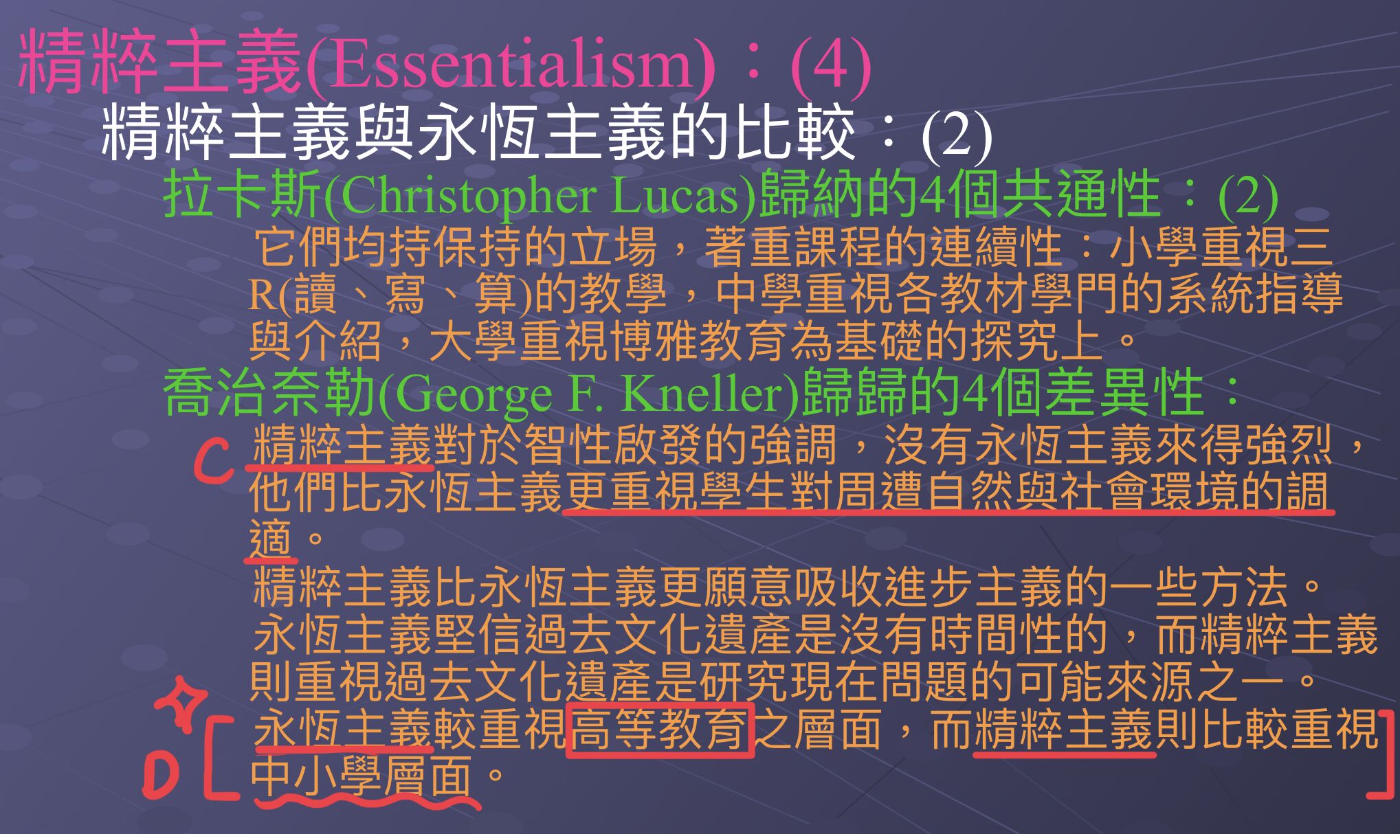 8. 「精粹主義」與「永恆主義」兩股教育勢力分別存有