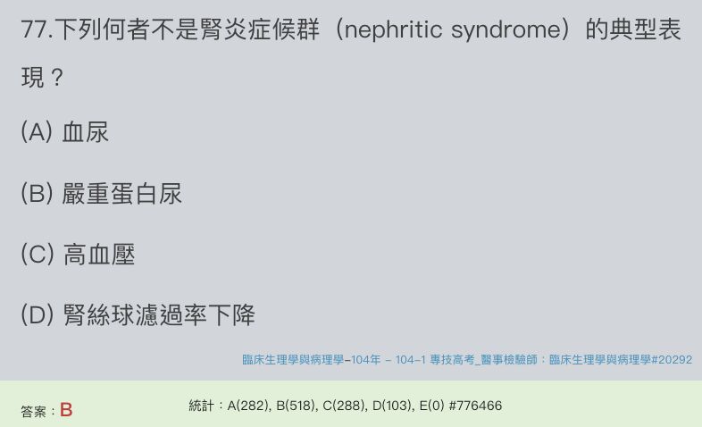 (A)嚴重蛋白尿