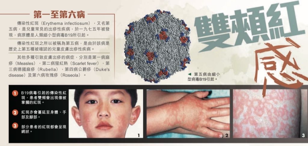 80.五歲幼兒出現雙邊臉頰類似被掌摑般的疹,身軀和四肢出現網狀的紅疹,最可能是下列何病毒感染?