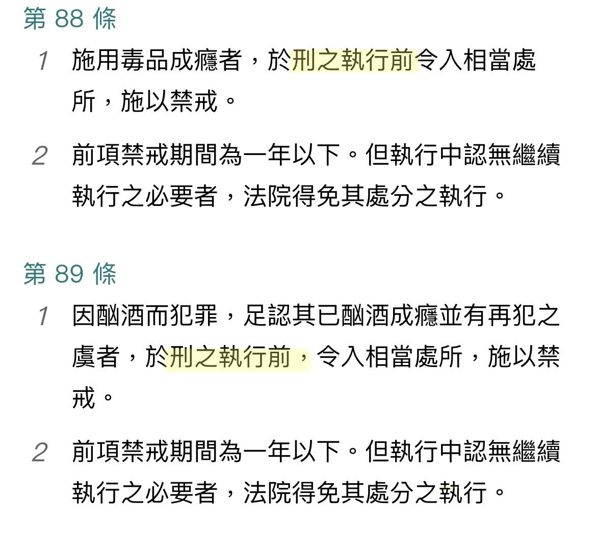 (A)第 88 條對毒品成癮者之禁戒處分
