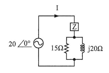 9.如圖所示電路,穩態電流 \( I=1\angle 0° \) A,則阻抗Z值為多少Ω?
