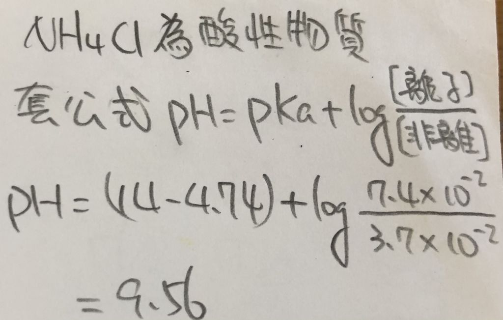 所以搬來搬去後 pKb+log[(NH4Cl)/(NH3)] =