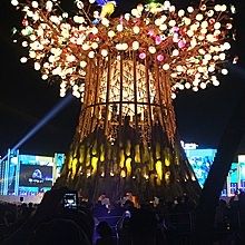 主燈:「森生守護-光之樹」 以原木板片結合鋼構,組立一座超過15米以上高度的巨大樹木形態,22條主結構分別代表台灣22個縣市,以偌大的板根,共同汲取大地的能量,向上伸展開枝散葉,又分別生長出代表各鄉鎮區里的368朵含苞待放的花苞造型花燈,枝枒間交錯散布著代表2359萬台灣人民的2359片心形綠色葉片,如家家戶戶在風中飄動閃耀發光,守護著台灣。