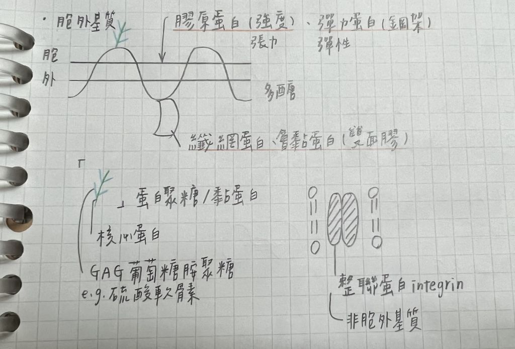 9. 存在動物結締組織之細胞外基質 (Extracellular matrix) 中,主要提供組織對於張力之抗性與支撐的物質為下列何者?