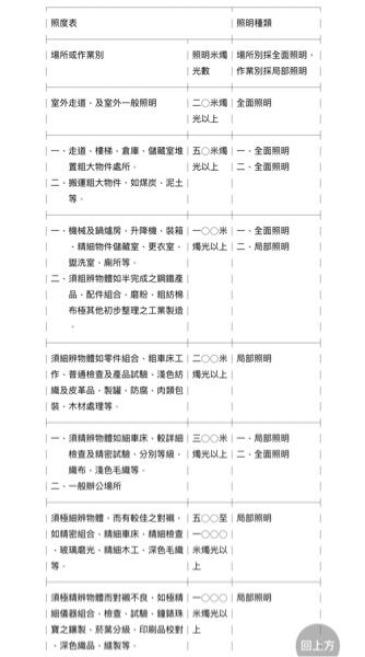│ 置粗大物件處所。 │光以上 │二、全面照明 │