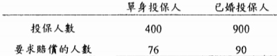 6.某大型汽車保險公司從單身及己婚n性投保人中分別柚樣,並記錄他們在過去三年間曾要 求賠償保險金的人數,得到資料如下: