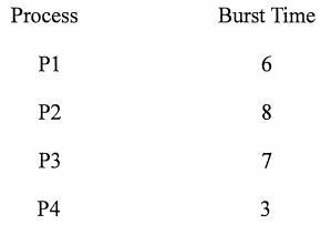 十、假設有下列processes其CPU分割時間單位為nanosecond。