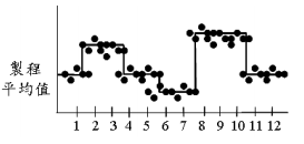 三、若製程平均值如下圖,以分散方式抽樣,每 5 個樣本形成一個樣本組。則