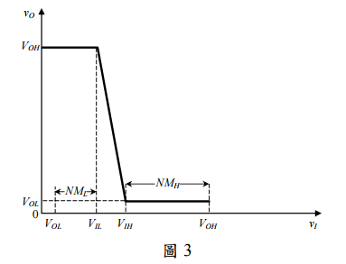 四、邏輯反相器的電壓轉移特性用三條直線來近似,如圖 3 所示。若V