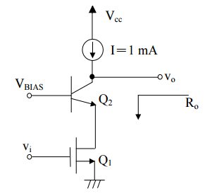 一、 如下圖所示,為一疊接(cascode)放大器。電路中V