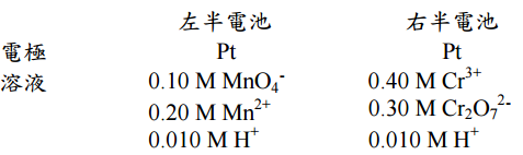 ⑴此電池之電池反應的反應商數(reaction quotient)Q。(4 分)