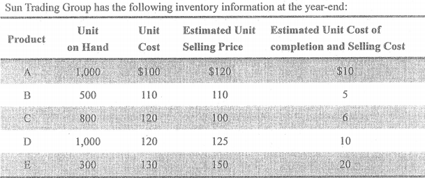 2。Sun Trading Group uses the Lower of Cost or Net Realized Value for its inventory valuation。