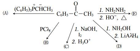 四、寫出苯乙酮與下列試劑反應之主要產物:(10 分)