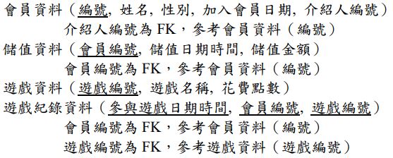 四、假設現有一會員網路遊戲的關聯式資料庫,其資料表敘述如下: