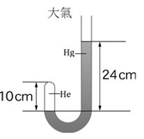 (1) 若欲使氦氣端的水銀面上升2.0 cm,則管中需要再加入水銀多少毫升?