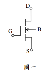 一、對於 n 通道增強型 MOSFET 元件符號如圖一所示,其基底(substrate)相對源極常 加上某偏壓 V