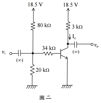 二、圖二為雙極性電晶體電路,已知電晶體之β = 80,V