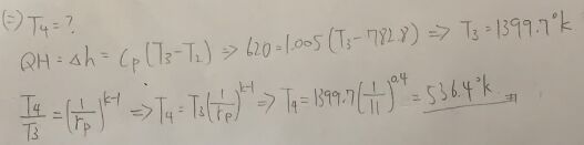 (二)此循環中,渦輪機出口空氣溫度為多少 °K?