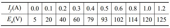 (二)若此發電機之轉速為 1200 rpm,調整磁場電流至= 1.0 A,當此發電機輸出額定電流時,計算發電機的端電壓 Vs 及效率η。(10 分)