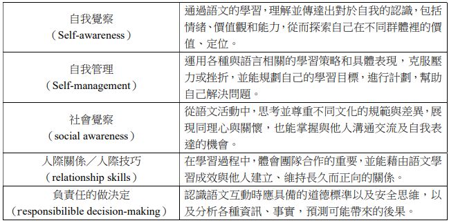 六、申論題 社會情緒學習(Social Emotional Learning, SEL)是一種培養個體識別、管理情緒、同理他人、 建立正向關係及做出負責任決定的教育過程。其核心內涵如下所示:
