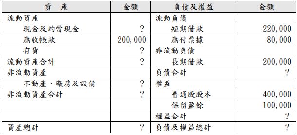 另知流動比率為 2 倍,速動比率為 1.5 倍。